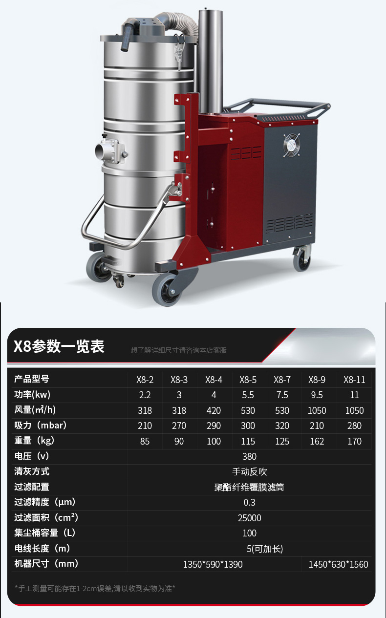 淮北坦洁380V双桶不锈钢工业吸尘器X7系列
