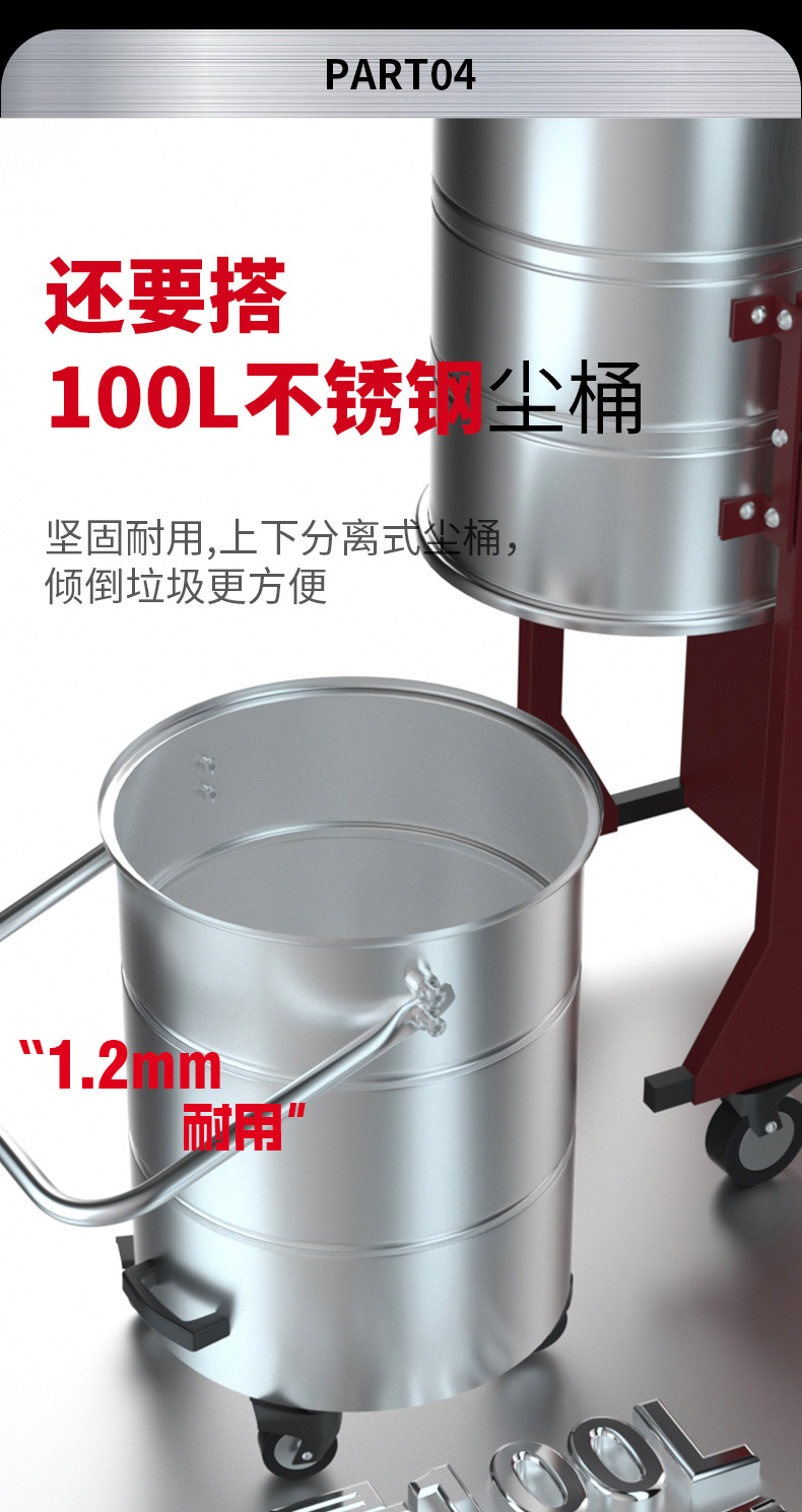 淮北坦洁380V双桶不锈钢工业吸尘器X7系列
